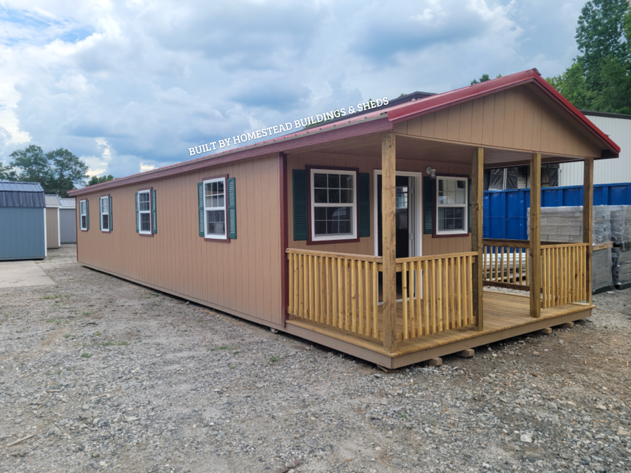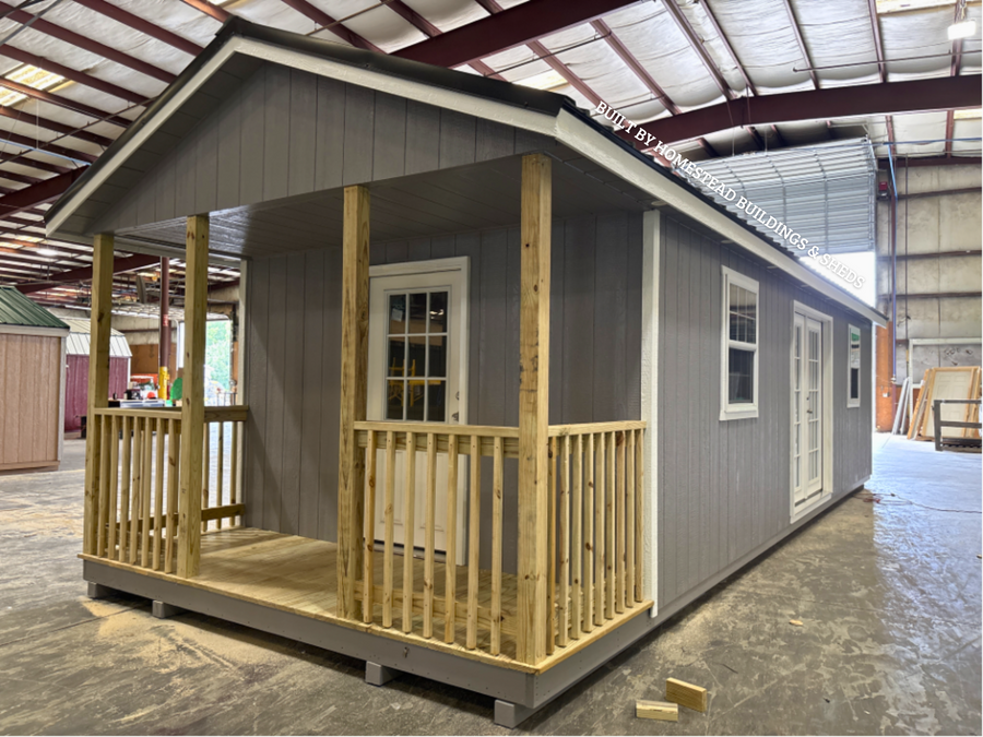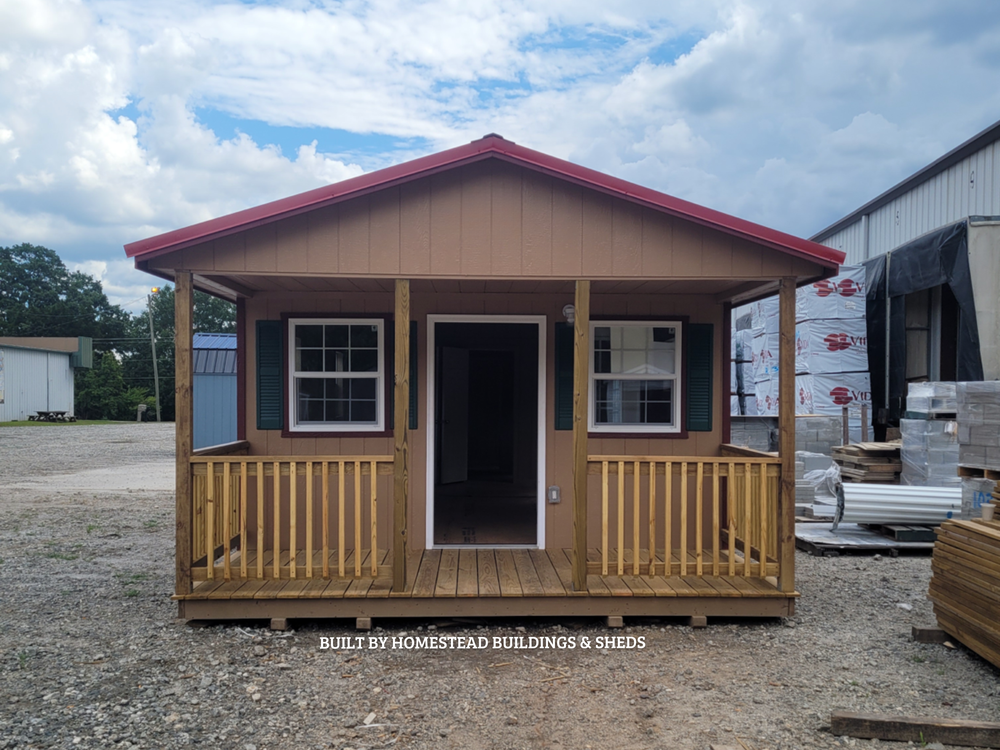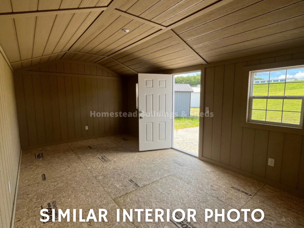 The finished Cottage style features exclusive standard options: Insulation throughout and wood paneling on the walls and ceiling. Every size also comes standard wired for electricity with 1 light, 1 switch, 4 interior receptacles and a 100 amp breaker box. Upgrades include AC units, baseboard heaters, wood-pattern linoleum flooring, double house type doors, larger house type windows, transom windows, and more! 200 amp breaker box and electrical conduits for future wiring available by special request.